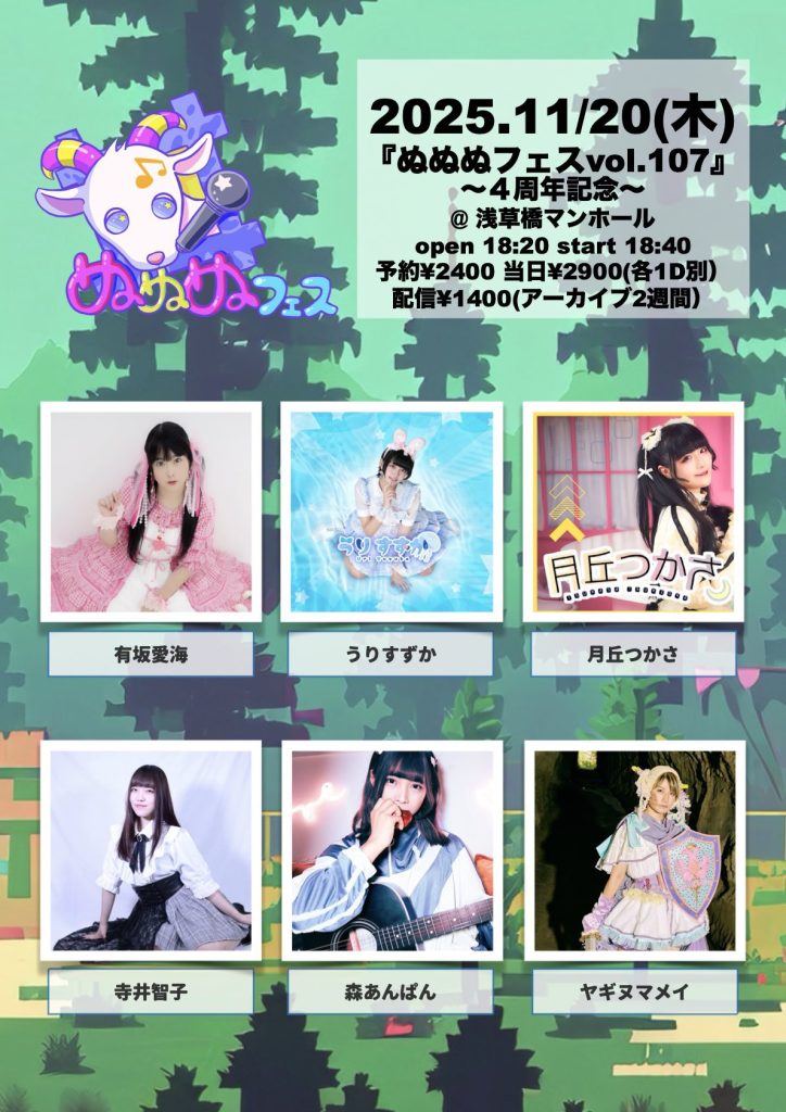 2025/11/20木浅草橋マンホール 『ぬぬぬフェスvol.107』 ~4周年記念~出演のお知らせ
