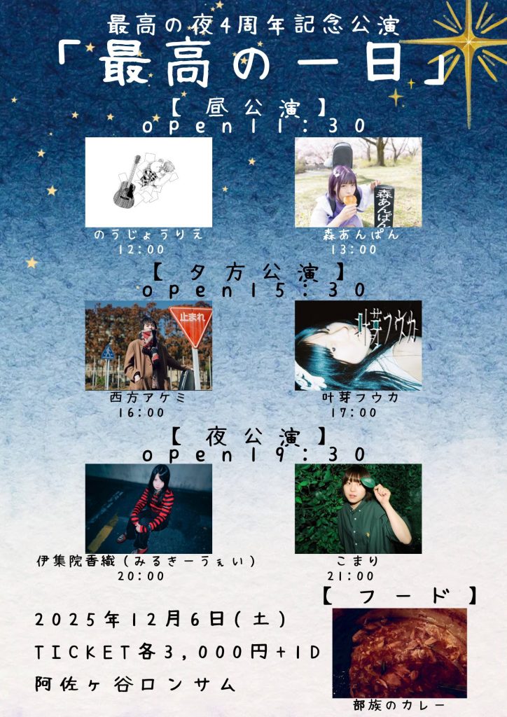 2025/12/6(土)ライブ出演1 ①お昼阿佐ヶ谷ロンサム「最高の一日」出演のお知らせ
