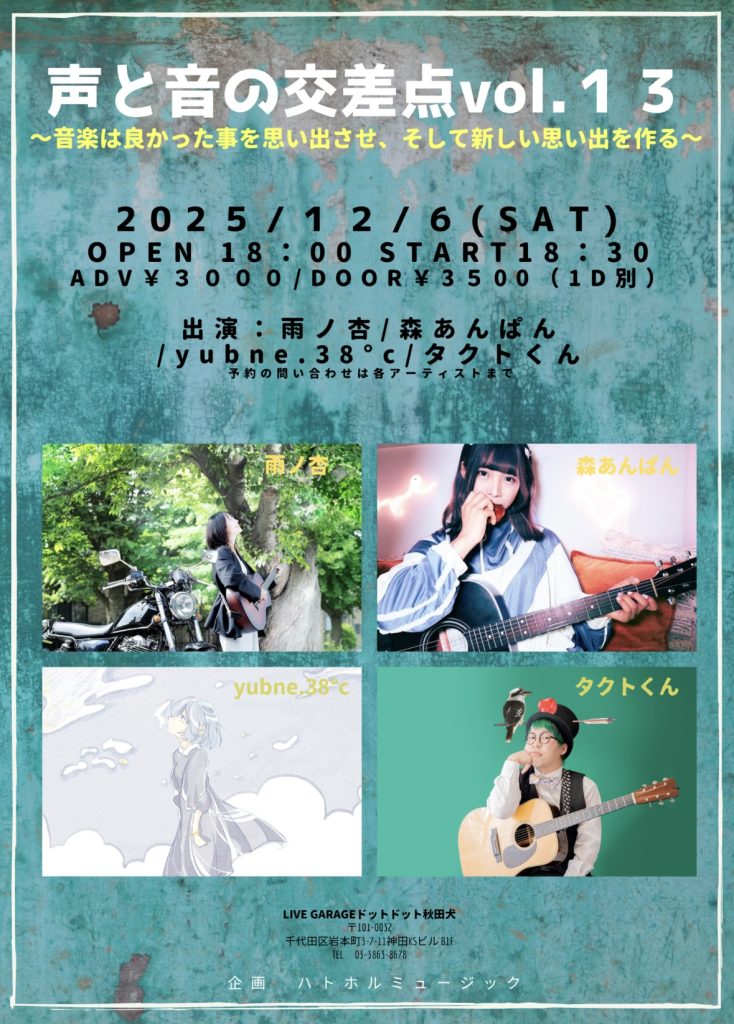 2025/12/6(日)2本目 秋田犬ドットドット声と音の交差点 vol.13 ~音楽は良かった事を思い出させ、そして新しい思い出を作る~ ライブ出演のお知らせ持ち時間40分
