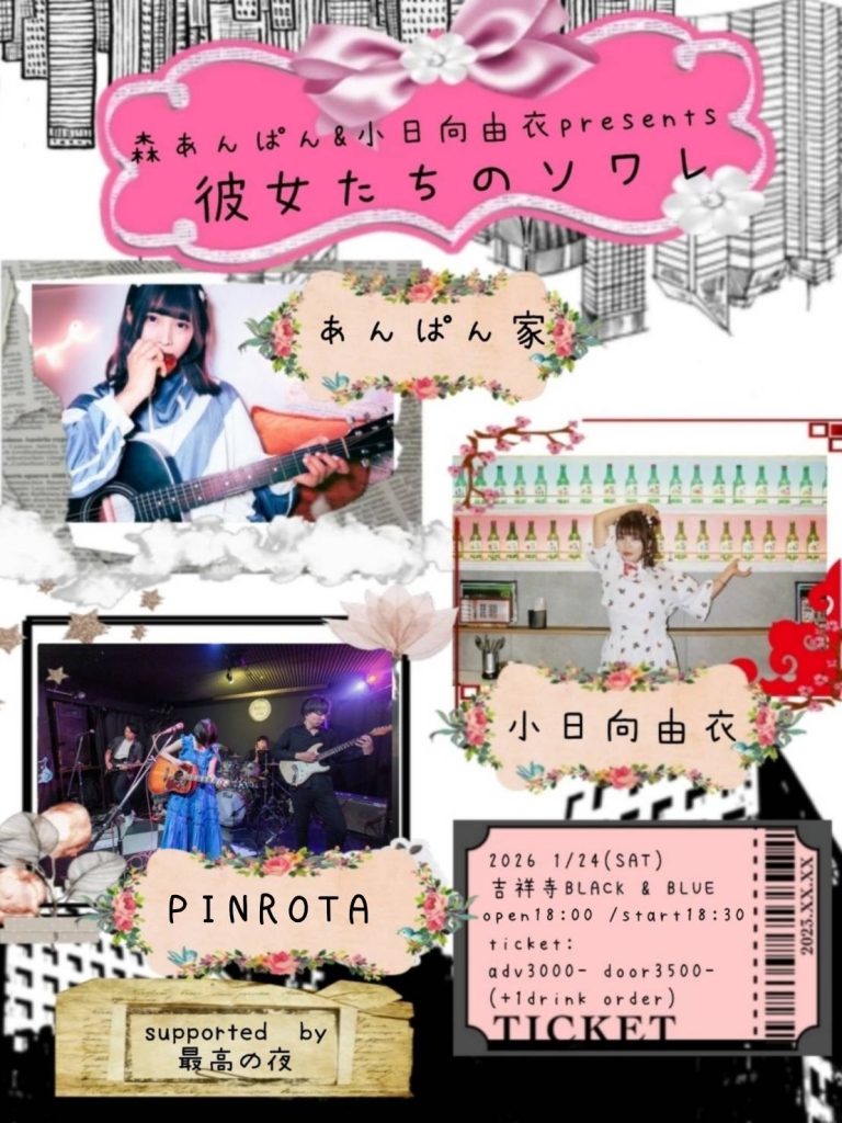 2026年1月24日(土) 夜吉祥寺BLACK&BLUE 森あんぱん&小日向由衣presents 「彼女たちのソワレ」開催のお知らせ(森あんぱんバンドあんぱん家出演)