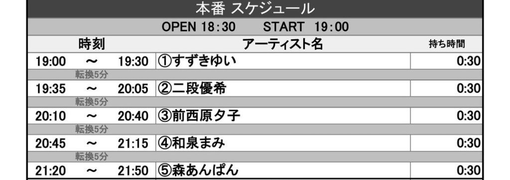 2026年3月9日(月)大塚Welcome back welcomebackpresents SONGSライブ出演のお知らせ