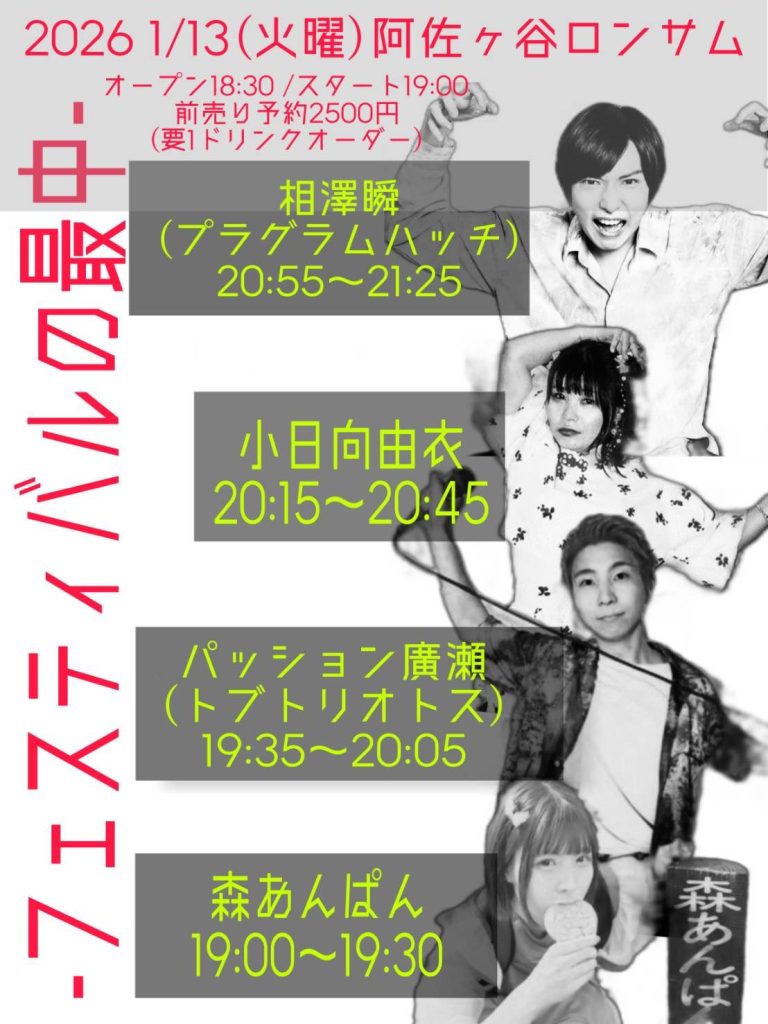 2026/1/13(火) 今日のできごとpre 「フェスティバルの最中」ライブ出演のお知らせ