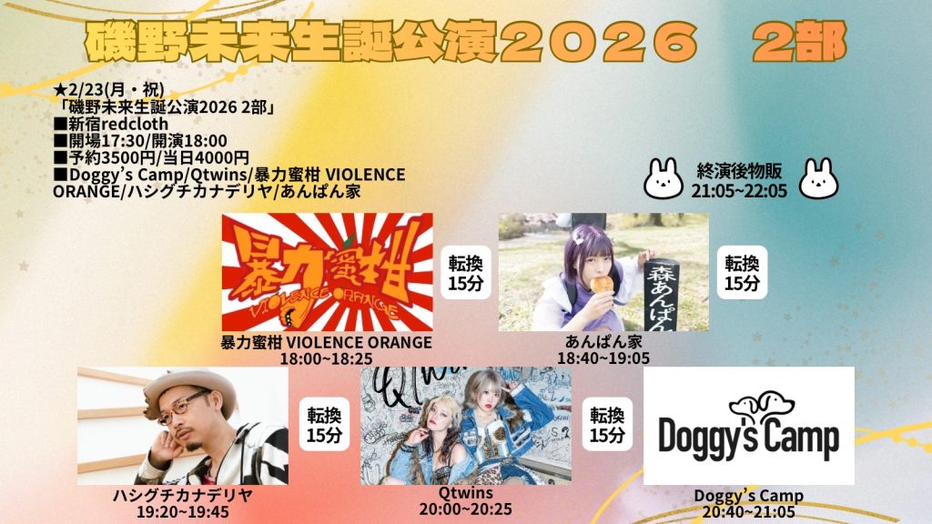 2026/2/23(月祝)磯野未来生誕公演2026 2部新宿redcloth出演のお知らせ(バンドあんぱん家