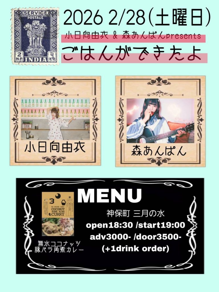2026 2/28(土曜日) 小日向由衣&森あんぱんpresents 『ごはんができたよ』夜帯