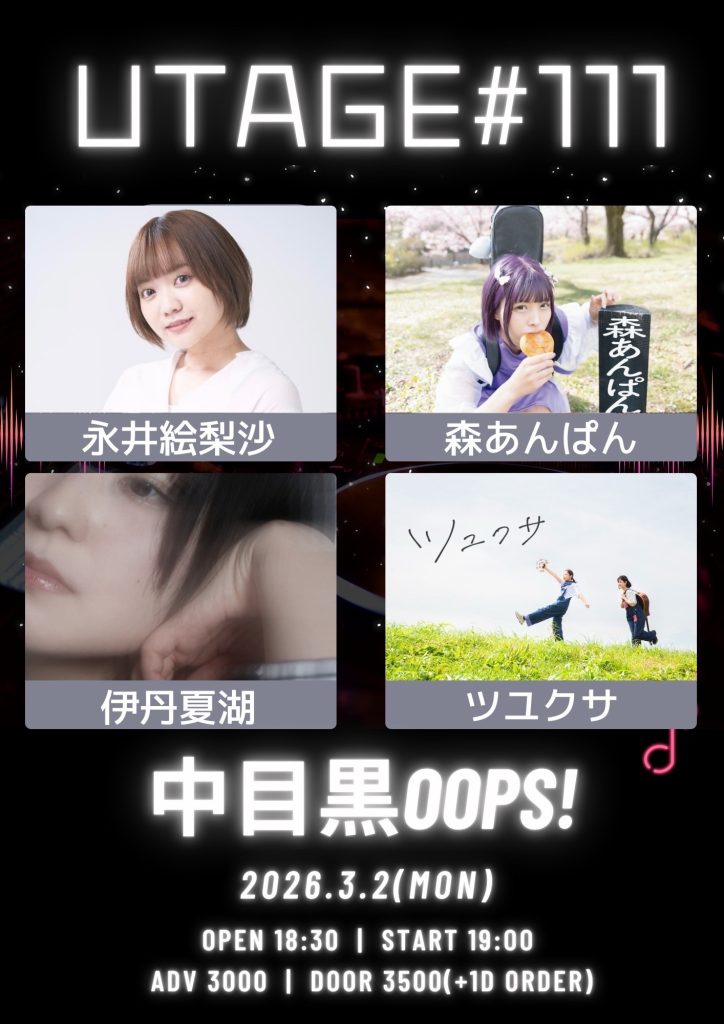2026/3/2(月)中目黒OOPS「UTAGE#111」ライブ出演のお知らせ