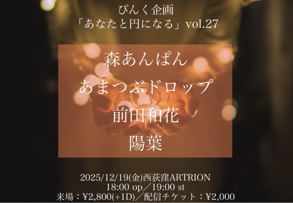 25,12,19(金)西荻窪ARTRION ぴんく企画「あなたと円になる」 vol.27ライブ出演のお知らせ